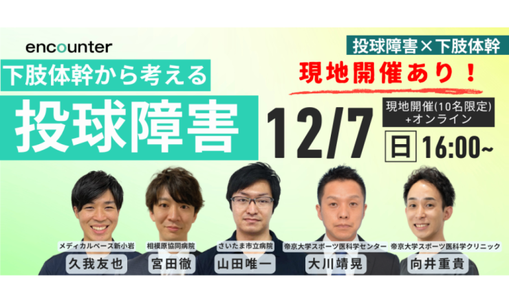 概要 2025年12月7日(日曜日) 16:00-19:00 【タイトル】 「下肢体幹から考える投球障害」 〜野球選手を守るた...