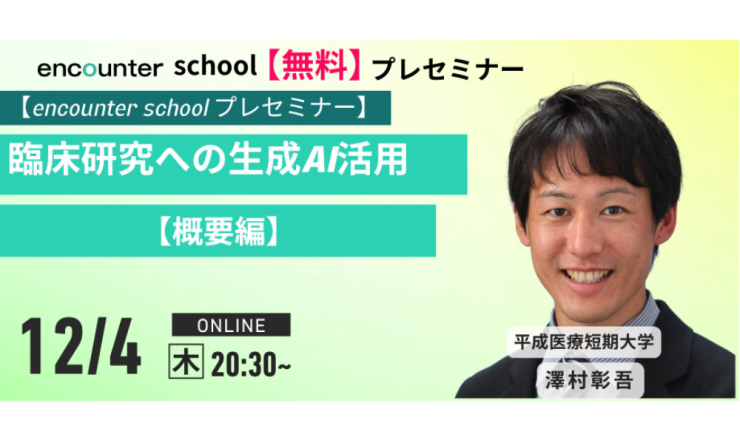 概要 2025年12月4日(木曜日) 20:30-22:00 【タイトル】 【無料】encounter school 臨床研究...