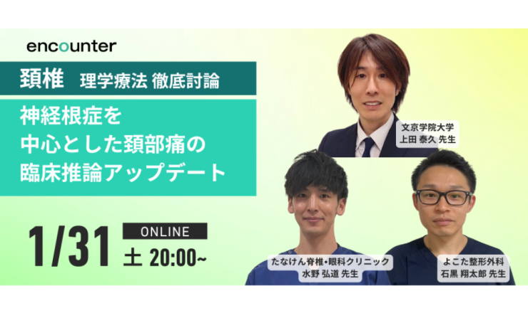 概要 2026年1月31日(土曜日) 20:00-22:00 【タイトル】 【頚椎理学療法 徹底討論】 神経根症を中心とした頚...